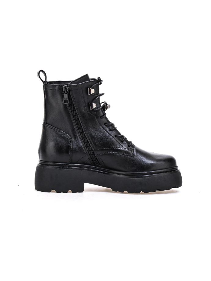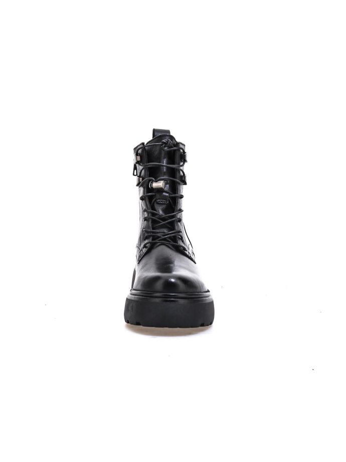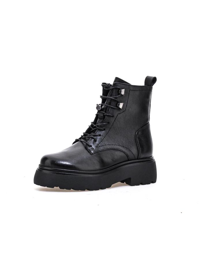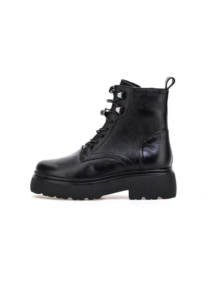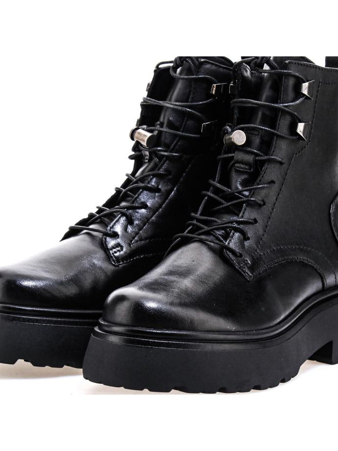 Entdecken Sie Mjus Ortisei Rockstiefel: Kampf- und Stiefeletten mit 5,5 cm Absatz. Trendige Lederschuhe für einen kantigen, modischen Look. Komfort trifft auf Stil in diesen Damenstiefeln, perfekt für urbane und Grunge-Outfits. Metallische Details und robuste Sohlen vervollständigen diese Must-haves für modebegeisterte Frauen mit kühnem, rebellischem Stil.