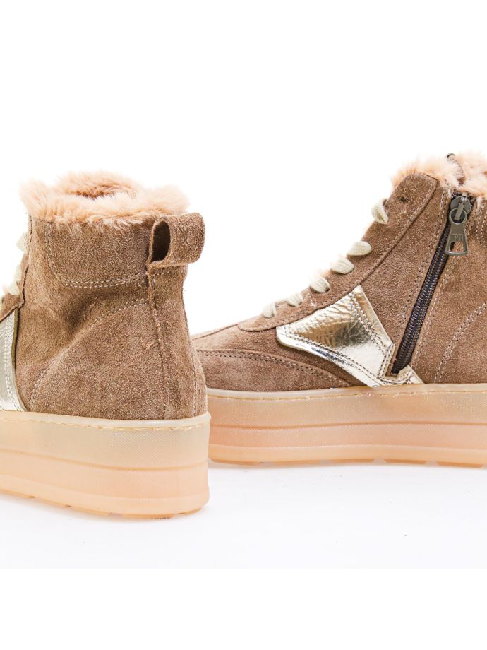 Entdecke die Lurdes-Familie von Mjus: Sneakers, Schuhe und Stiefeletten mit besonders hoher Keilsohle. Weich, warm und leicht – häufig aus Veloursleder und reflektierenden Details gefertigt. Die perfekte Verbindung aus modernem Stil und täglichem Tragekomfort.