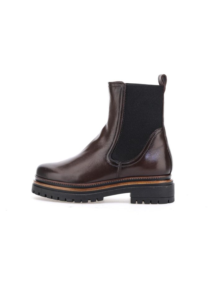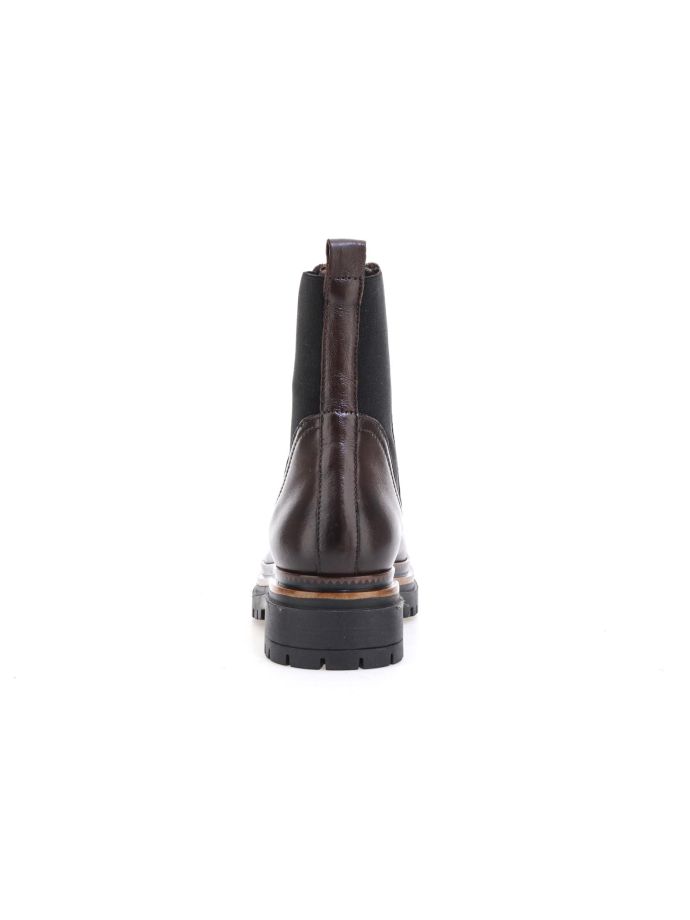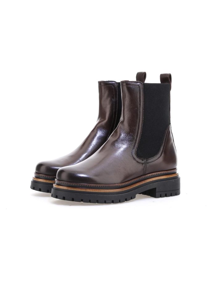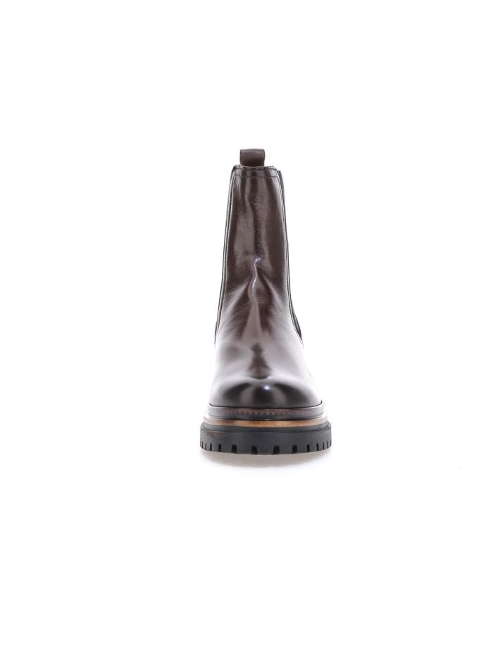Die Leder-Stiefeletten der Derek-Linie verbinden die robuste Ausstrahlung von Combat Boots mit der femininen Eleganz klassischer Chelsea-Boots. Die markante Profilsohle verleiht dem Look eine sportliche, moderne Note und betont den spannenden Stilkontrast