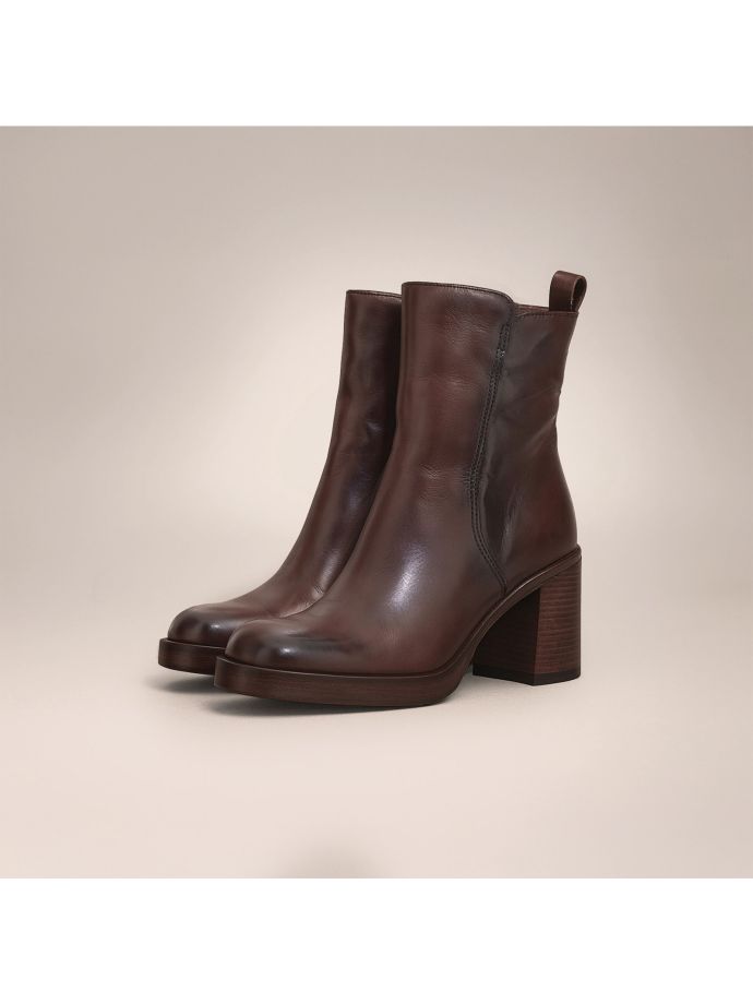 Die Lederschuhe der Micaela-Linie zeichnen sich durch eine kantige Spitze und blockige Absätze aus. Die klaren Formen spiegeln den minimalistischen Trend der Saison wider, während dezente Details klassischen Modellen eine moderne Note verleihen.