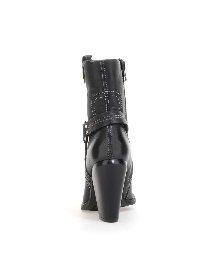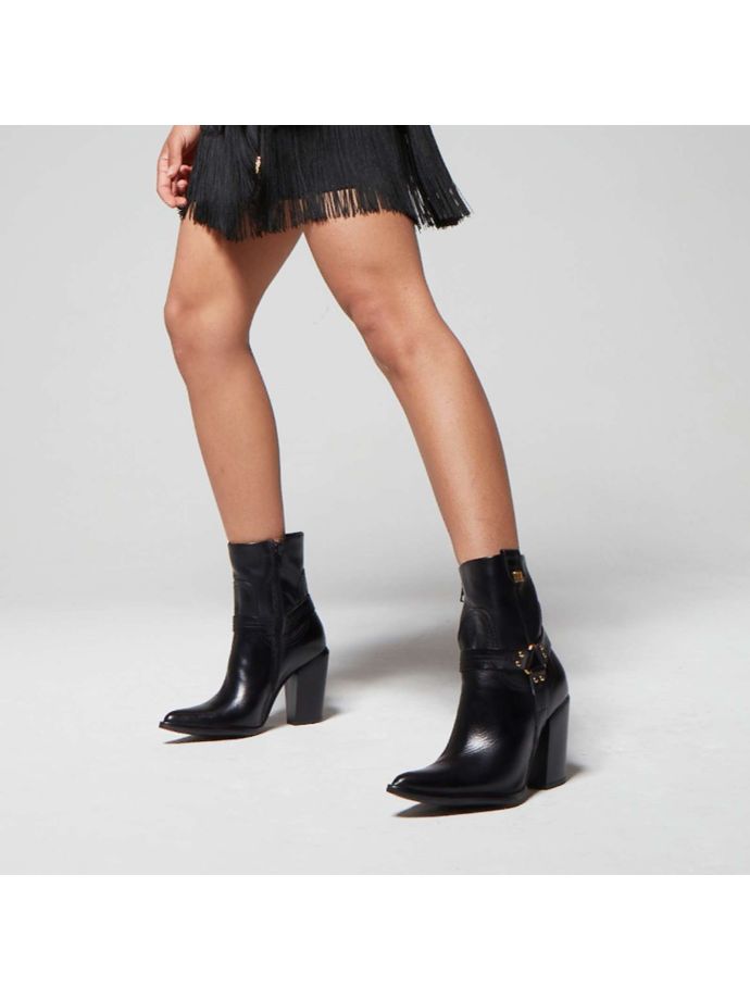 The Flora leather ankle boots, with a touch of western style but a contemporary twist, are a modern reinterpretation that adds an extra boost to any outfit. These ankle boots combine the essence of classic western boots with a renewed and current design.