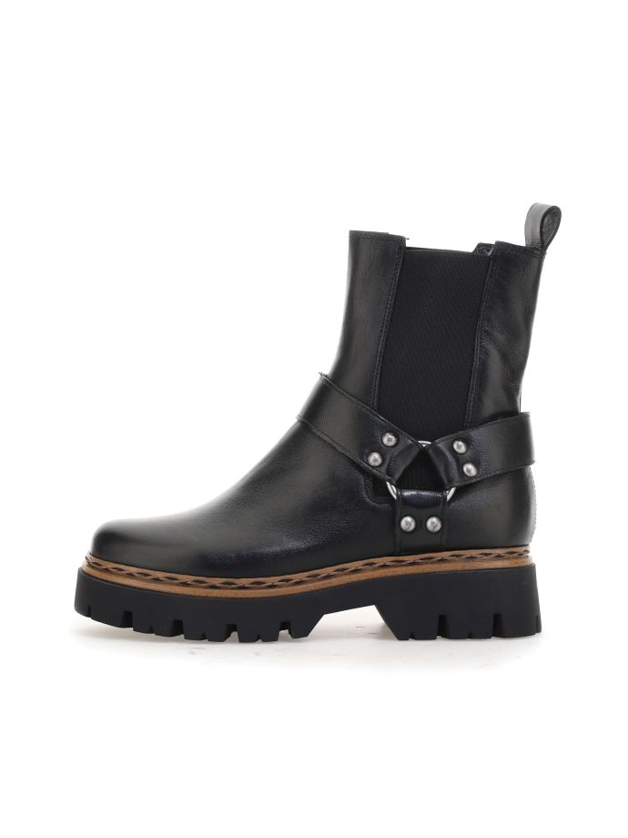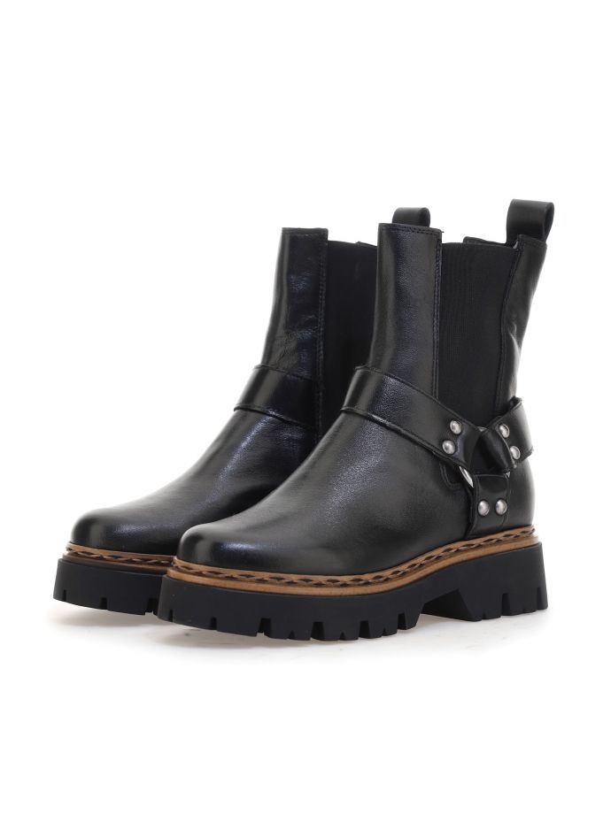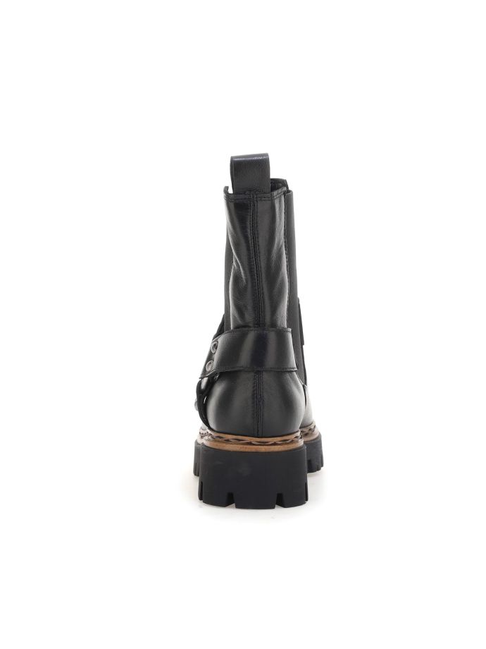 Mjus’ Dolomiti line embodies the rock spirit with its bold combat boots. The 4.5 cm heel offers ideal height for an edgy look without compromising comfort. These boots combine ruggedness and style, perfect for those who love a rebellious yet refined aesthetic. Their versatility makes them suitable for both casual outfits and more sophisticated occasions, always ensuring a touch of character and originality to the look.