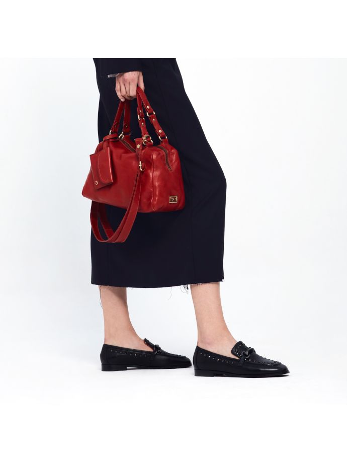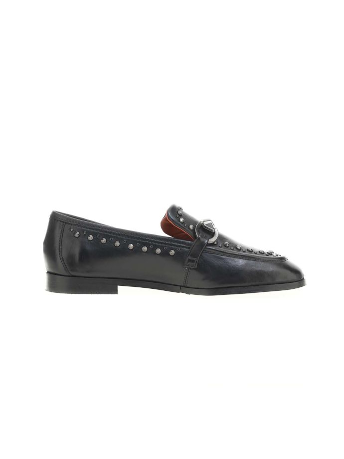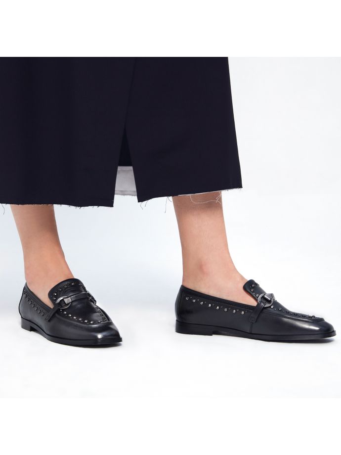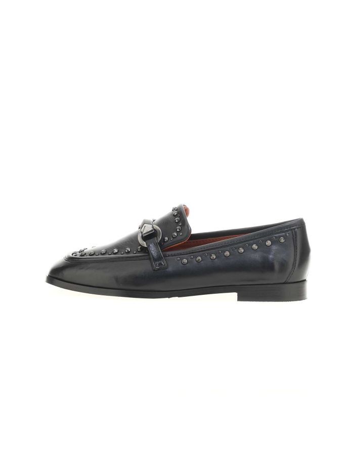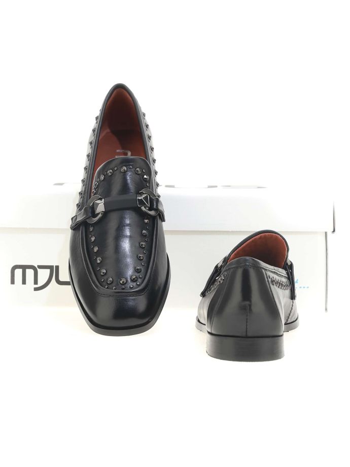 Explore Mjus Volterra loafers: low shoes with 2 cm heel. Casual elegance with distinctive buckles and subtle studs. Versatile design for a sophisticated yet comfortable look. Perfect for office and leisure, these women’s loafers combine Italian style with everyday practicality. Buckles and studs add a trendy touch to a timeless classic.