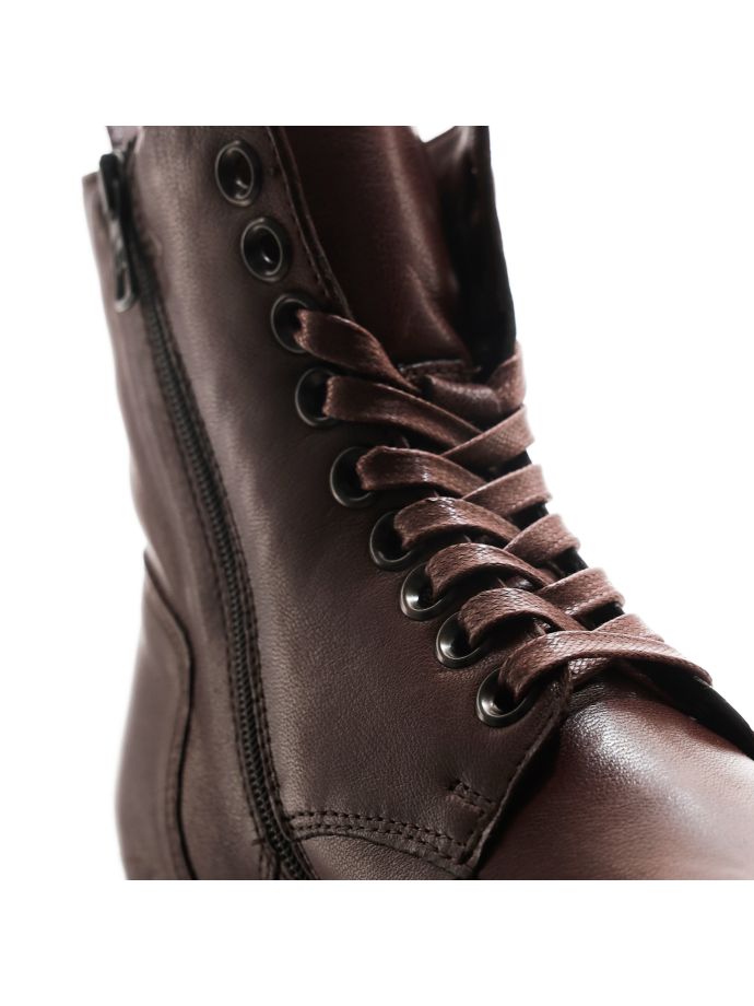The leather ankle boots from the Derek line combine the bold spirit of combat boots with the feminine charm of Chelsea styles. The chunky sole adds a sporty, modern touch, creating a striking contrast that defines the line’s bold identity.