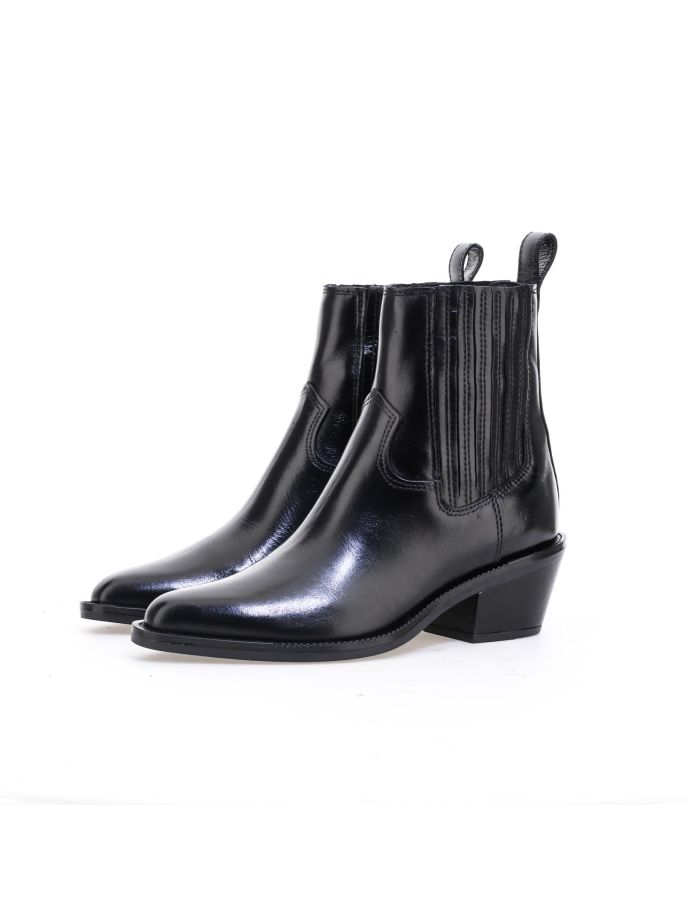 Découvrez la famille Teresa de Mjus : bottes et bottines au caractère western affirmé, avec bout pointu et talon camperos classique. Un style audacieux, parfait pour le bureau comme pour une escapade stylée.