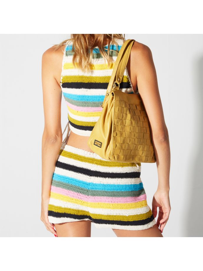 La fusione di stile e design caratterizza tutte le borse Mjus, le quali sono completamente concepite in Italia. L’impiego di pellami pregiati, l’applicazione di meticolose tecniche di concia e la realizzazione attraverso sofisticate lavorazioni artigianali le conferiscono un’originalità senza pari. Ogni borsa in pelle si distingue per una personalità unica, presentando uno stile e un design da esplorare.