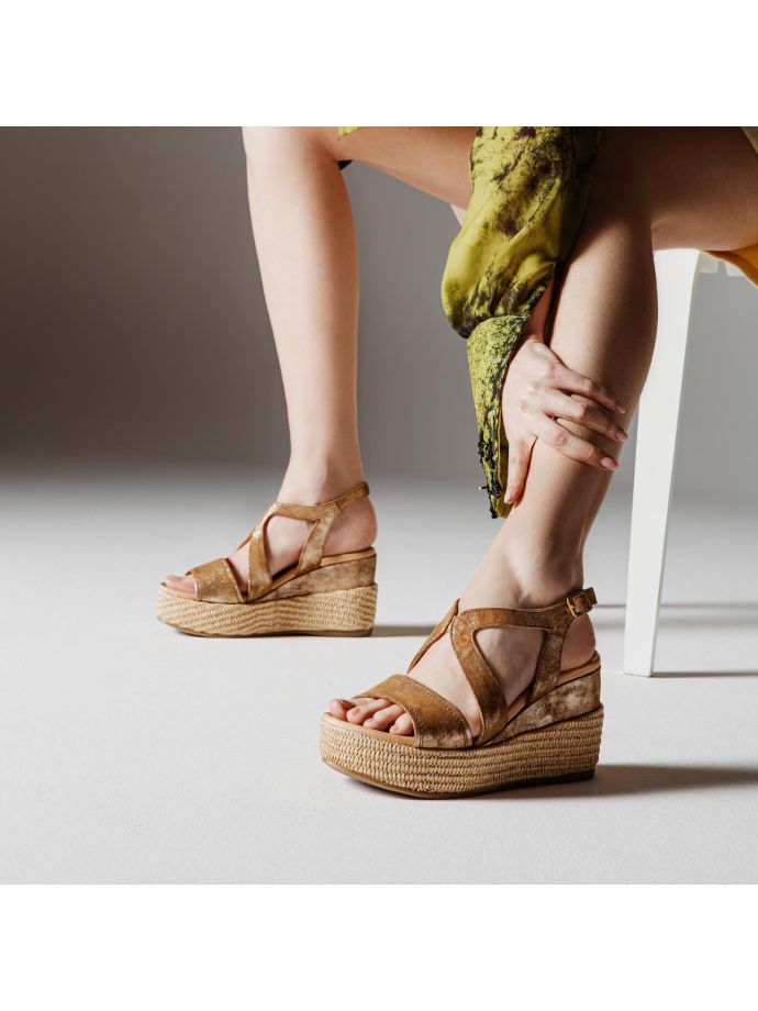I sandali con zeppa in stile espadrillas Palermo by Mjus offrono alle donne un mix ideale di comfort e stile. Con la loro suola in juta e la zeppa alta, forniscono un supporto stabile e una leggera altezza aggiuntiva, rendendoli ideali per le calde giornate estive. Questi sandali sono versatili e si abbinano facilmente a vari outfit, dalle gonne leggere ai pantaloni casual, rendendoli una scelta chic e pratica.