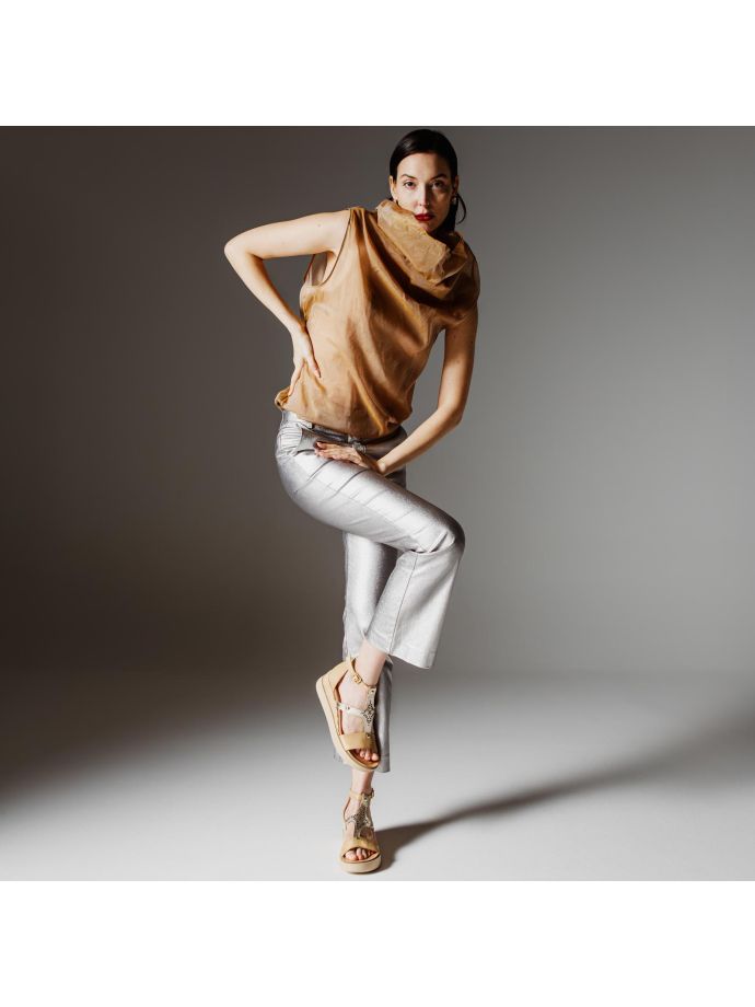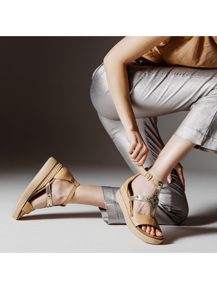 Il sandalo con zeppa "Tipa" di Mjus è una sintesi di solarità e femminilità. Con un design semplice e colorato, è ideale per le giornate calde, offrendo stile e comfort. La zeppa voluminosa conferisce femminilità senza compromettere la stabilità, mentre i cinturini sulla parte superiore aggiungono grazia. Perfetto con vestiti leggeri, gonne o pantaloni cropped, per un look fresco in estate.