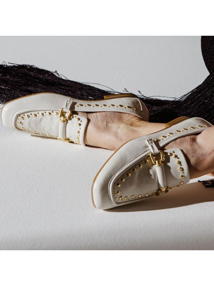 Il mocassino Ventimiglia è un elemento iconico dell’estate con Mjus. Sia che stiate cercando un modello aperto dietro o chiuso, rimane straordinariamente confortevole, garantendo una calzata comoda. Questo mocassino da donna è disponibile in vari colori, arricchito da un grande accessorio ispirato al mondo dell’equitazione e dotato di un piccolo tacco. Con la sua semplicità raffinata, è adatto per ogni occasione.